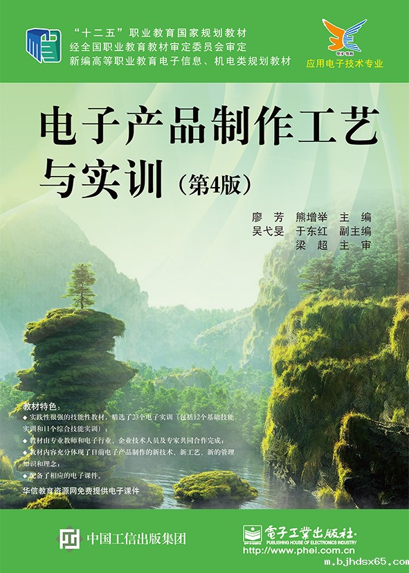 《电子产品制作工艺与实训》教材分为七个项目:常用电子元器件及其检测、电子产品制作的准备工艺、焊接工艺与技术、电子整机产品的装配与拆卸、调试技术、电子整机的检验防护与生产管理标准、技能操作实训等。每个项目都有[项目任务]、[知识要点]、[技能要点]提示,项目讲解之后有[归纳总结]及[自我测试]。教材最后设有3个附录,介绍常用模拟和数字集成电路、提供常用集成电路芯片的引脚排列、给出自我测试参考答案,便于电路器件的功能学习和电路设计,便于自我学习和自我检测。