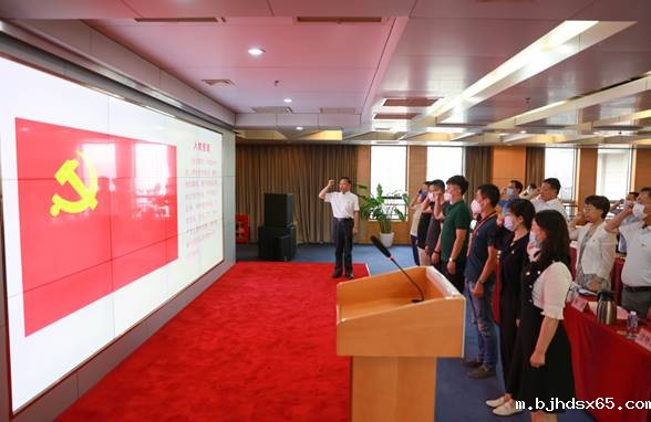 党委委员、副总经理兼总编辑刘九如带领新党员在党旗下庄严宣誓。其他与会党员重温入党誓词,进一步坚定了永远忠于党、永远跟党走的信心和决心。