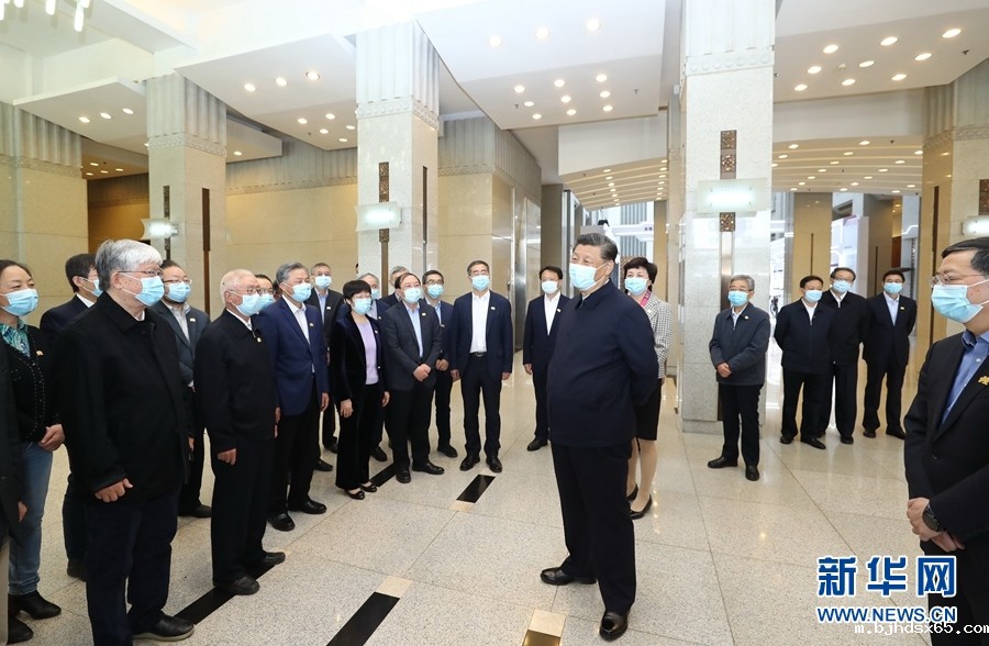 4月19日,在清华大学建校110周年校庆日即将来临之际,中共中央总书记、国家主席、中央军委主席习近平来到清华大学考察。这是习近平在清华大学主楼二层大厅看望部分老教授、中青年骨干教师代表并同他们亲切交谈。新华社记者 鞠鹏 摄