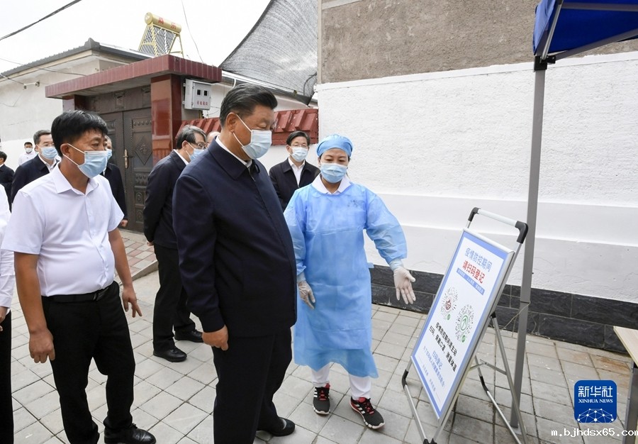 8月23日至24日,中共中央总书记、国家主席、中央军委主席习近平在河北省承德市考察。这是24日下午,习近平在双滦区偏桥子镇大贵口村考察,了解改善村民医疗卫生条件、做好常态化疫情防控等情况。新华社记者 李学仁 摄