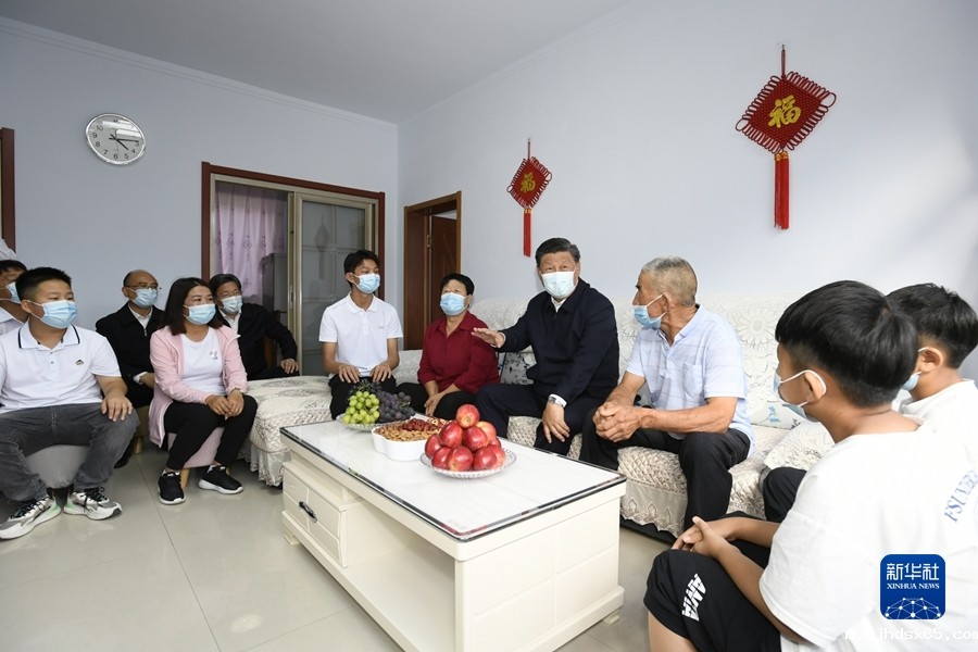 8月23日至24日,中共中央总书记、国家主席、中央军委主席习近平在河北省承德市考察。这是24日下午,习近平在双滦区偏桥子镇大贵口村同村民霍金一家人亲切交谈。新华社记者 谢环驰 摄