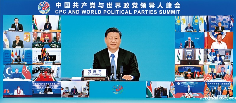 2021年7月6日,中共中央总书记、国家主席习近平在北京出席中国共产党与世界政党领导人峰会并发表主旨讲话。 新华社记者 李响/摄